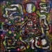 Dit schilderij representeert hoe het voelt om als een autistisch en adhd individu door het leven te gaan. Het is altijd chaotisch, toch ziet u dat er nog lichtelijke regelmaat in te vinden is. Dit is de verbeelding van het contrast tussen de twee mentale diagnoses. De ene wilt alles op orde, de ander leeft voor de chaos. In het midden ziet de kijker een slot, dit staat voor het non verbale aspect van autisme. Er gebeurt zoveel, alles komt zo hard binnen, zo hard dat je even niks meer kunt zeggen. Zelfs simpele woorden voelen als een vergeten gedachte. Ik had gekozen voor felle kleuren, omdat het prikkelend is. Als je kijkt naar het doek is er ook zoveel te zien. Het is een soort kijkje in mijn drukke gedachte wolk.